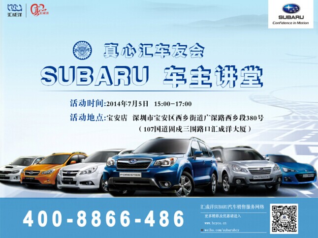 汇成洋斯巴鲁官方微博:http://weibo.com/subaruhcy