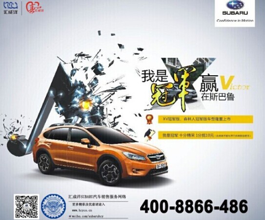 “我是冠军赢在斯巴鲁” 车展期间,中山汇成洋斯巴鲁活动优惠多多,惊喜好礼不断,优惠内容如下: