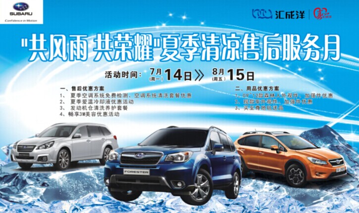 为了答谢广大客户对斯巴鲁品牌的支持,中山汇成洋斯巴鲁在2014年7月14日至8月15日推出了“夏季清凉售后服务周活动”。在活动期间,您不仅可以体验到优质的售后服务,为爱车防暑降温,更有多种活动精品可拿。详询电话:0760-85280280,更多惊喜等着您!