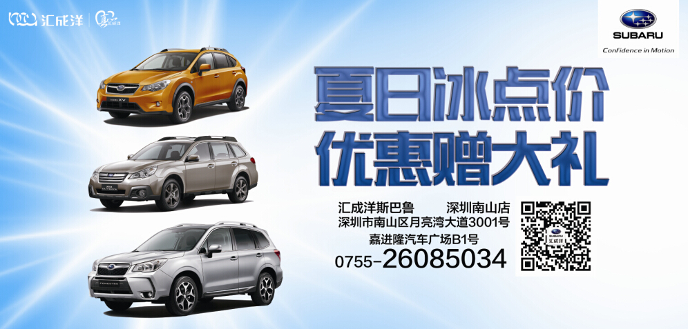 本周末(8月16日-8月17日)汇成洋斯巴鲁南山店出展深圳湾体育馆车展,靓车出击!先下手为强!