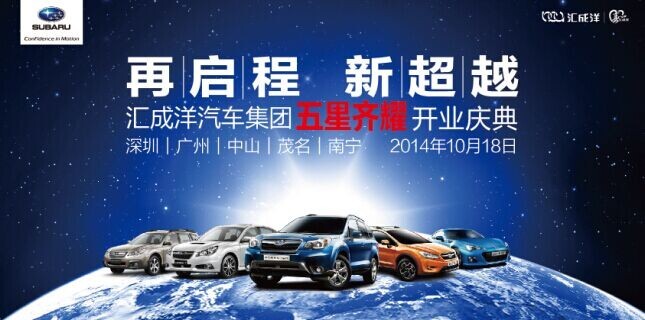 再启程,新超越!汇成洋斯巴鲁邀您莅临龙华名车广场4S店,参加10月18日开业盛典!因为专注所以专业。买SUV选汇成洋斯巴鲁!汇成洋专注斯巴鲁十二年,十月五星齐耀盛大开业,到店还有机会享十全十美十重大礼!