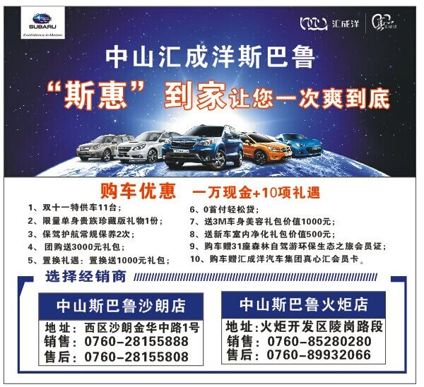 活动热线:中山斯巴鲁火炬店:0760-85280280