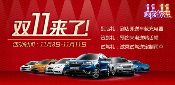 汇成洋斯巴鲁龙华店在这个双十一,有礼好看!全系车型,钜惠一放到底!