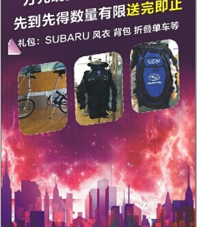 订车礼 (超万元综合钜惠+超值礼包, 折叠单车 SUBARU风衣 SUBARU背包) 等你来拿。