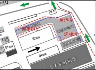 试驾项目顺序:单边桥——防滑测试——掉头至炮弹坑——回到终点