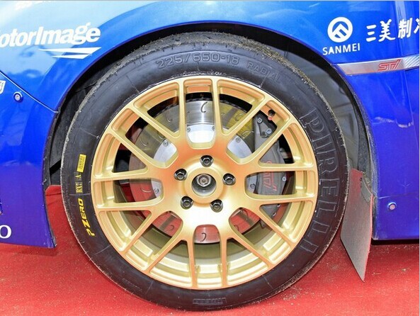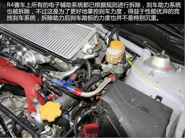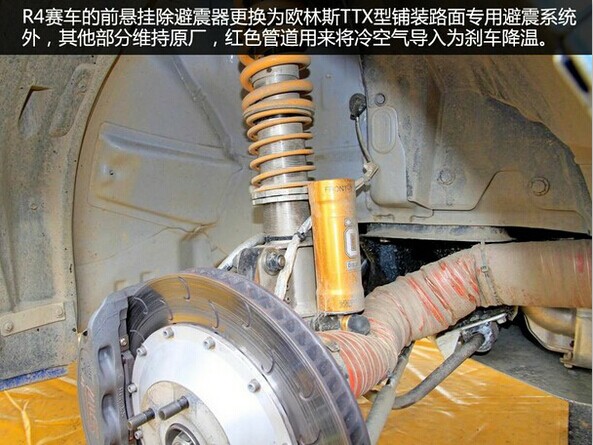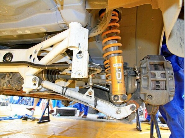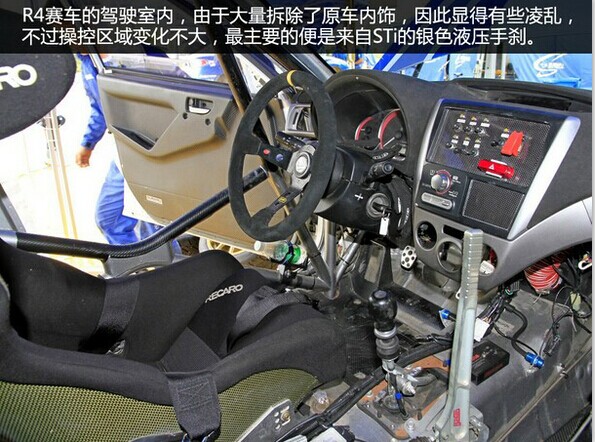 负责保证赛车在激烈驾驶情况下仍旧异常稳定的,除斯巴鲁车型独有的左右对称四驱系统外,还有来自世界顶级竞技避震OHLINS(欧林斯)的优异支撑和平滑的回弹控制。配合倍耐力半热熔柏油拉力轮胎,整个STi R4赛车的动态表现稳健而不失灵活——当车手只是轻微转动方向盘时,R4赛车呈现出少许转向不足的趋势,可以让赛车在高速弯中保持稳定;当通过某些中速弯,需要车尾以一定的滑动配合车头转向时,则只需稍稍提高转动方向盘的速率,车尾随即就会以线性且小幅度的滑动来完成过弯。完全不会出现那种会导致车身打横的剧烈甩尾(这种情况会带来很高的危险性同时损失大量时间,因此车队在调校过程中会尽量避免这种情况)。