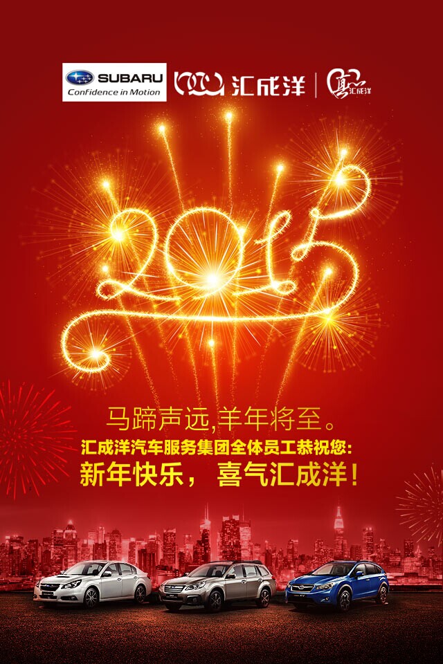 值此羊年伊始,汇成洋汽车服务集团全体员工向您致以衷心的问候和深深的谢意!感谢您始终如一的热忱关怀和支持!祝愿您元旦快乐,幸福常伴!